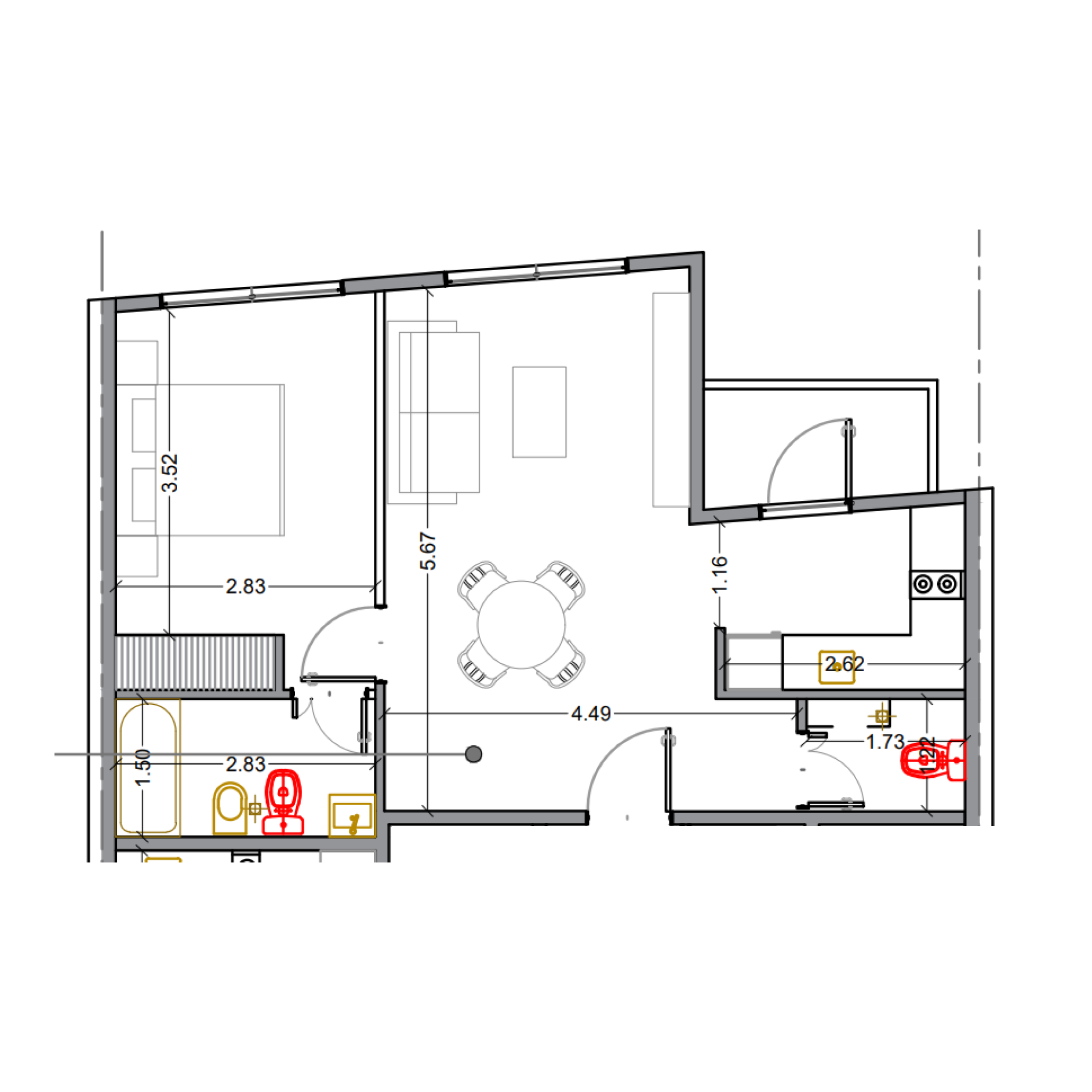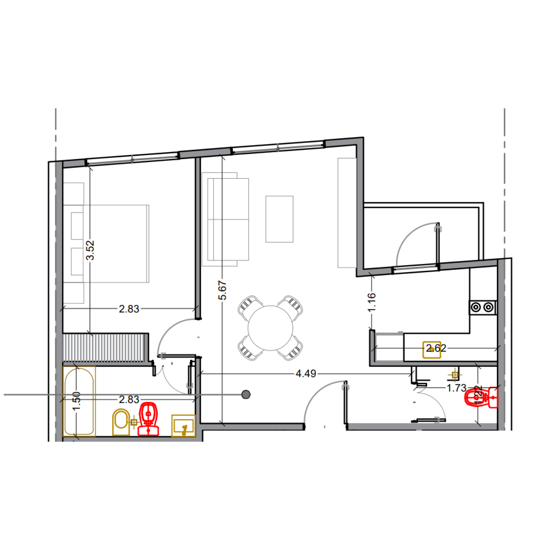 Cubierta 45,05m² | Exterior 6,95m² | Total 52m²
