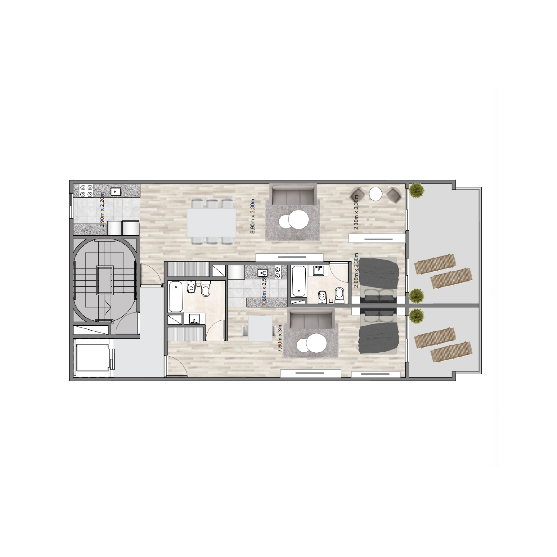 Ofrece unidades tipo monoambiente y opciones divisibles, pensadas tanto para vivir como para inversión, con espacios bien resueltos y buena luminosidad.