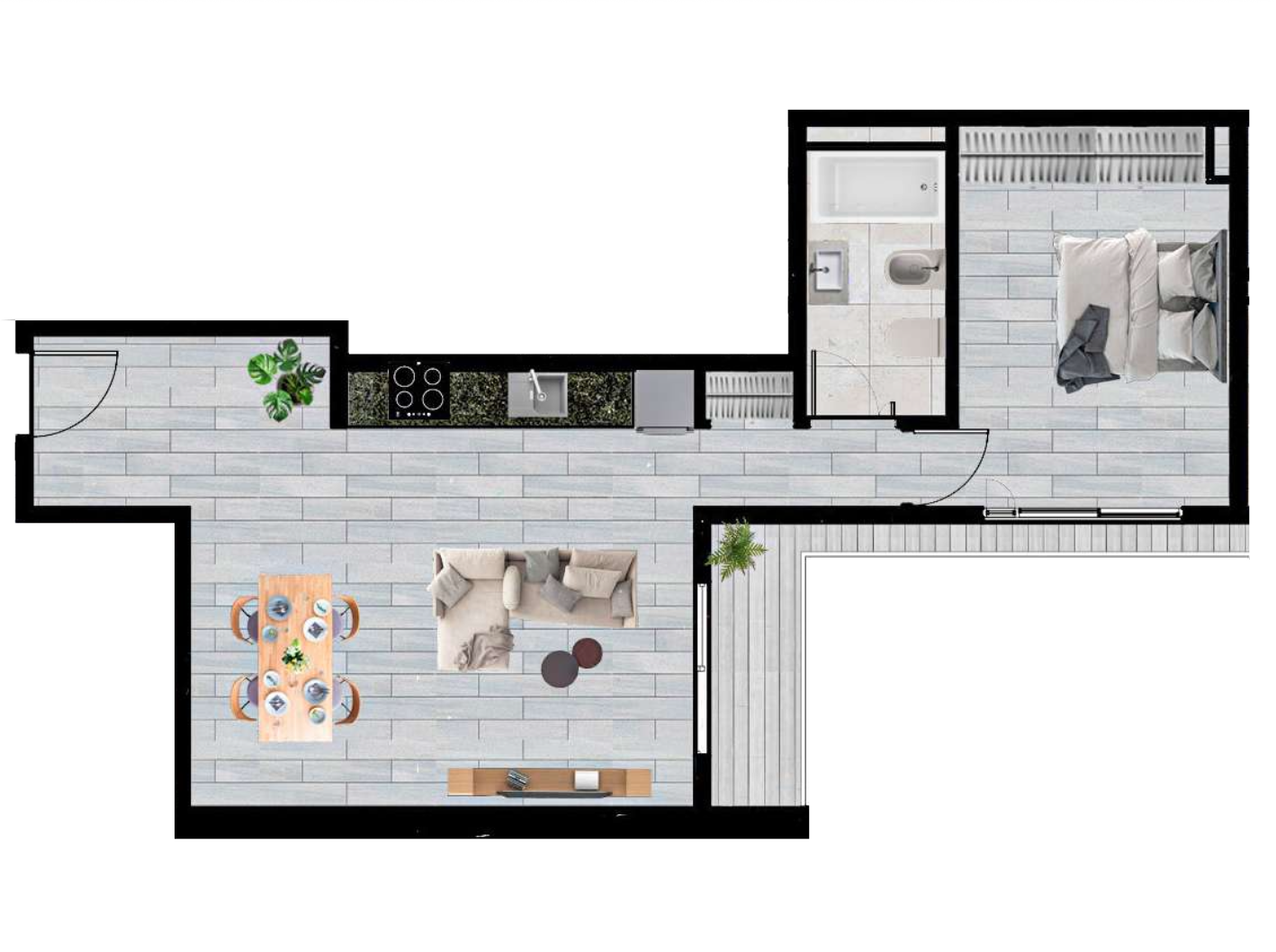 Cubierta 39m² | Exterior 8m² | Total 47m²