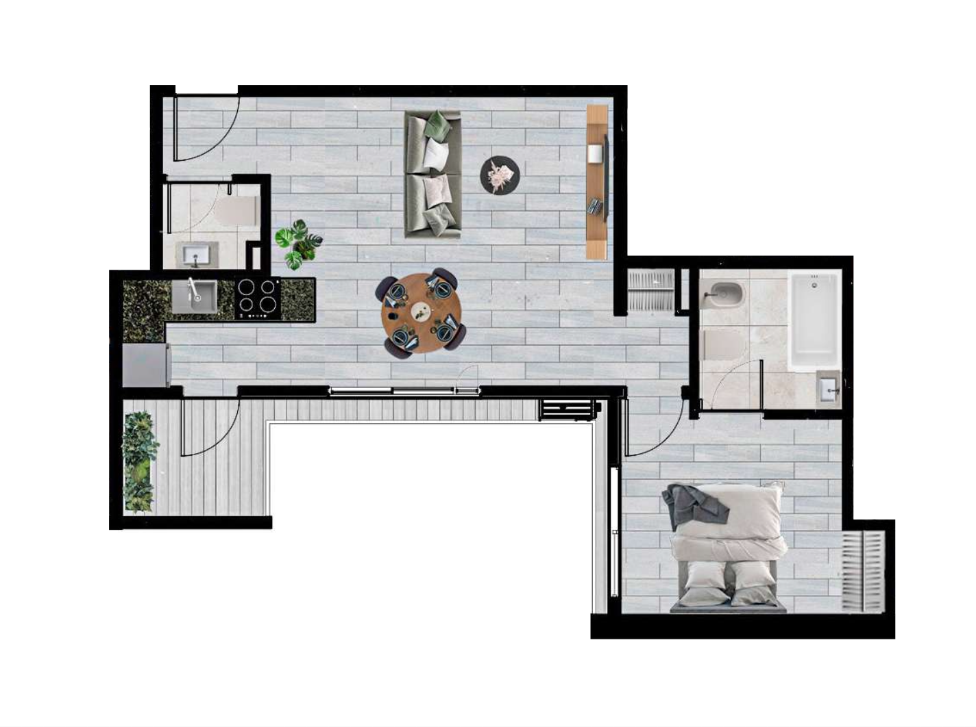 - Diseño moderno y funcional: unidades de 1 y 2 ambientes pensadas para un estilo de vida urbano y contemporáneo.